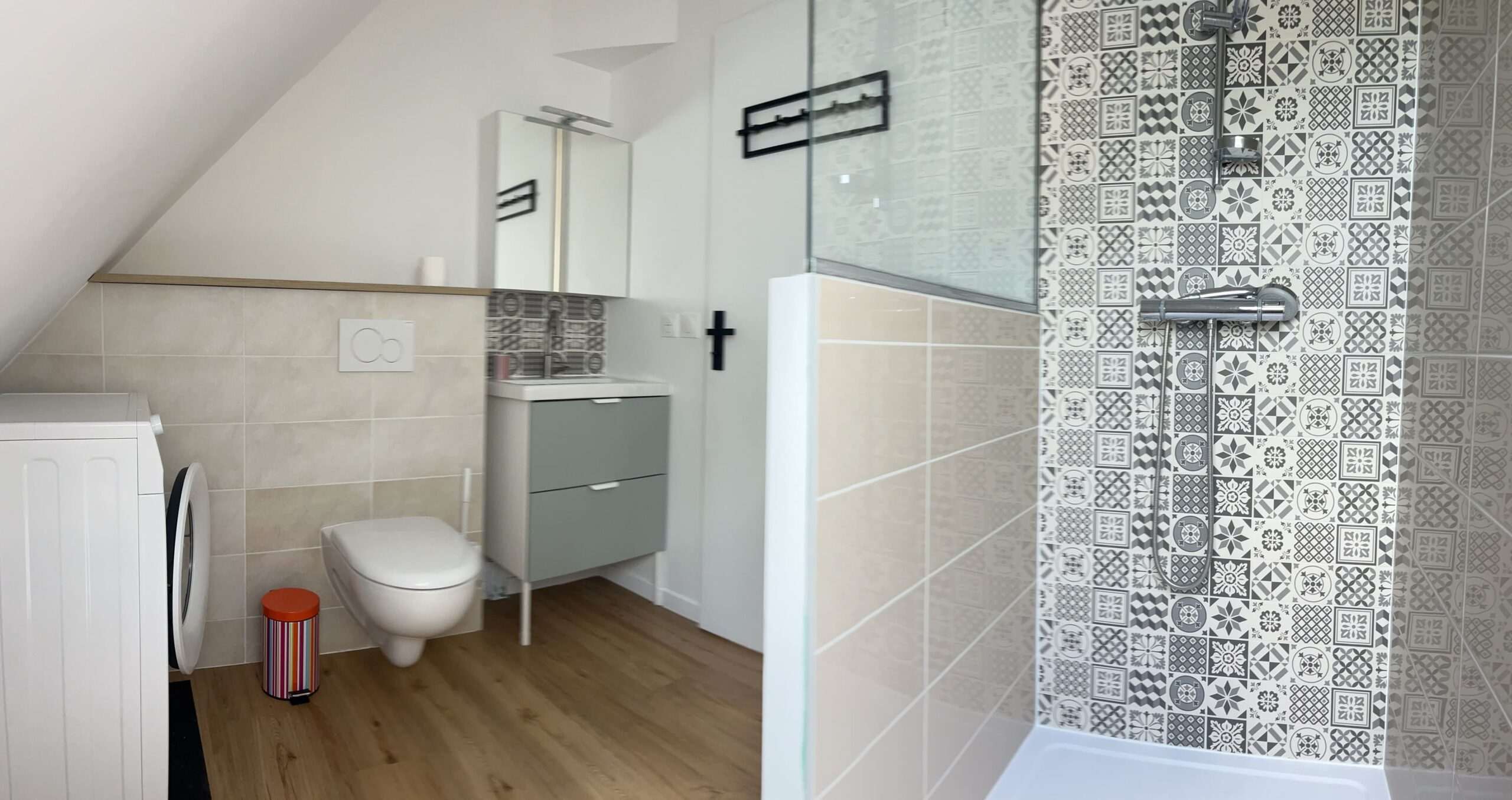 Dans une maison des années 60, nous avons transformé les combles non aménagés en deux appartements fonctionnels et indépendants, destinés à la location étudiante.